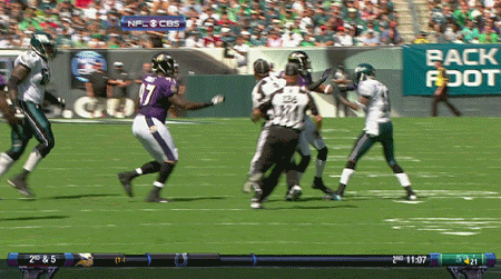 By the end of the first half, the run-pass ratio was 1:23, or something egregious like that. Andy called four – FOUR – handoffs to LeSean McCoy in the first half. Four. And of course, once he entered the second half down 24 points, he didn’t need an excuse to keep passing… And inexplicably decided to start running the ball.